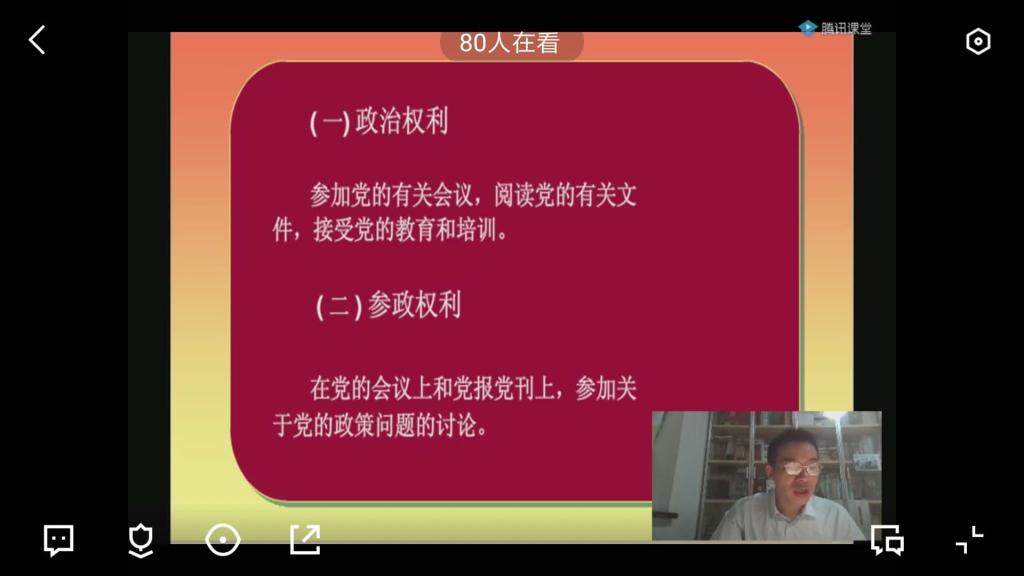 积极了解党员应该履行的义务,努力明确党员享有的权力。2020年9月25日晚7点30分,管理学院党委书记钱祖煜利用腾讯课堂,给麻豆成人网 全体党员上了一堂《党员的权利与义务》的党课。钱书记指出,甘愿付出是每一个党员的必备素质,党员的权利也是人民赋予的,通过本次党课,提高了党员的政治素养及责任意识,推进了麻豆成人网 党员的自我思想反省,同时,使得党员们深切的体会到作为一名党员应正确行使自己的权力,认真负责的履行自己的义务。