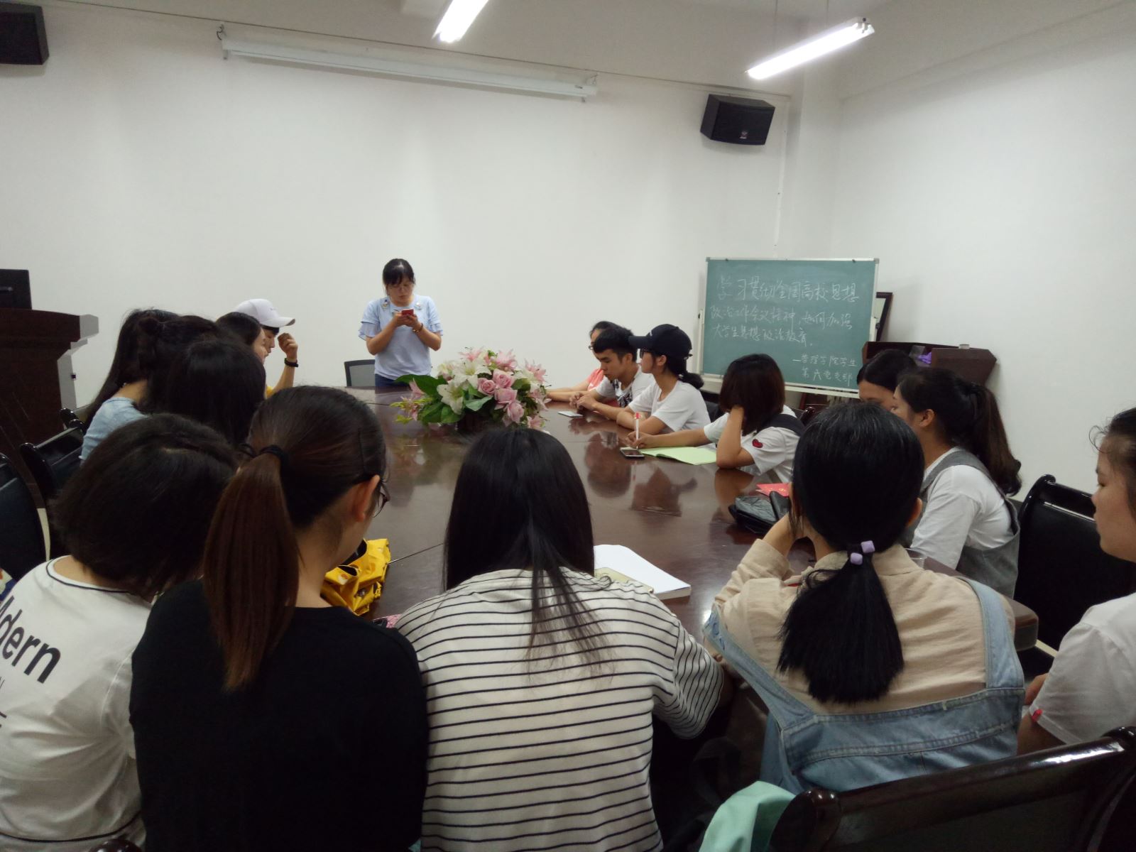 管理学院学生第六党支部于2017年6月13日下午17时于F座104会议室召开主题党日活动学习,主题是“学习贯彻全国高校思想政治工作会议精神,如何加强大学生思想政治教育。”党日活动的主持人为支部书记周艺老师,活动参加人员是管理学院学生第六党支部的正式党员和预备党员,记录人为曾慧婕。
