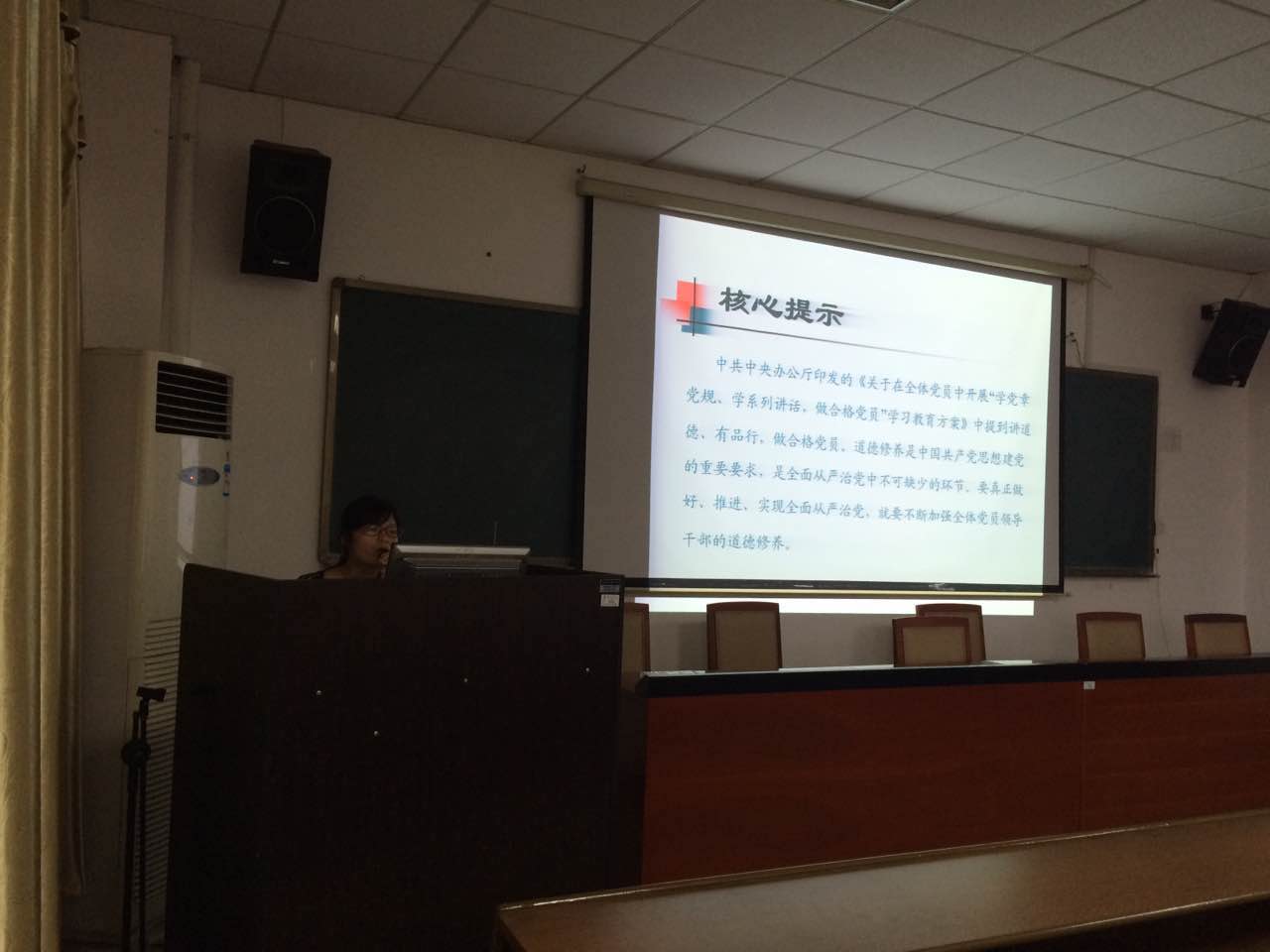 2016年6月29日上午9点,管理学院学生支部13、14、15级共59名学生党员,在g505进行了“两学一做”学习系列活动专题三“讲道德、有品行”的党课学习。会计支部书记周艺老师主要从三个方面阐述了党课的主要内容:一是讲道德、有品行的时代意义,二是共产党员应当具备怎样的道德品行,三是如何做到将道德、有品行。