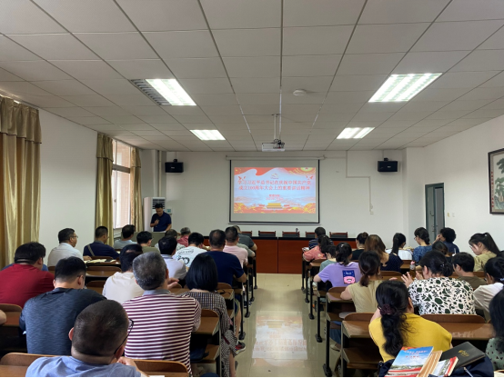 全体老师在G505深入学习贯彻习近平总书记在庆祝中国共产党成立100周年大会上的重要讲话精神,余博书记主持学习。