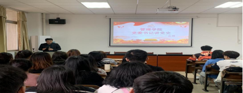 4月25日,管理学院组织全体党员学生干部在新校区G-505开展以“百年恰是风华正茂”为主题的党史培训学习,此次培训学习由党委书记余博主持。
