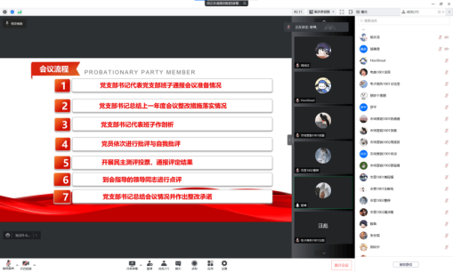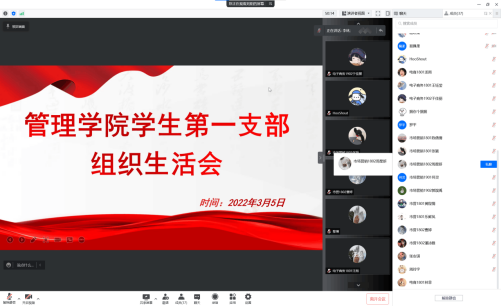 管理学院学生第一党支部全体成员在线上召开了2021年度组织生活会并开展了支部书记“双述双评”和民主评议党员工作。旨在通过此次会议提高党员素质、增强党员政治责任感、改进党员工作态度,进一步加强基层组织建设和党员队伍建设。会议由支部书记李林主持,学院党委委员黎博作为党支部联系领导参与指导,共35名党员同志参与会议。