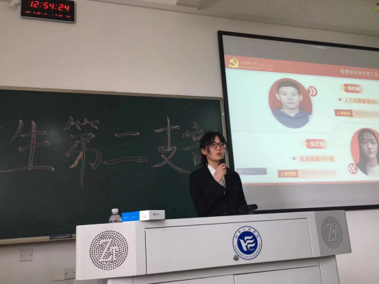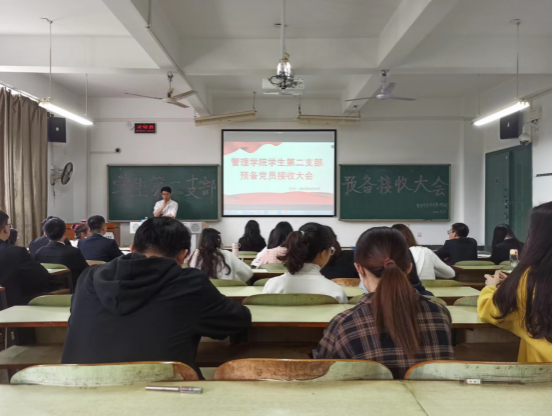 2022年5月20日12:30管理学院学生第二党支部在教学楼B406召开支部大会,讨论是否接收袁采玉等7名同志为中共预备党员的相关事宜,会议由支部书记罗蒙主持,支部全体正式党员、预备党员及拟接收预备党员共45人参与了本次会议,会议严格按照组织发展程序进行。