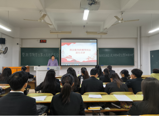 为深入学习贯彻党的二十大精神,严格执行党的组织生活制度,增强党员的组织、纪律观念,提升党支部凝聚力和战斗力。按照学校和学院党委的统一安排,2023年3月7日中午,管理学院学生第三支部委员会在B座202召开2022年度组织生活会暨民主评议党员大会。会议由支部书记陈祎婷主持,支部36名党员参加会议,管理学院党委委员单艳艳出席指导会议。