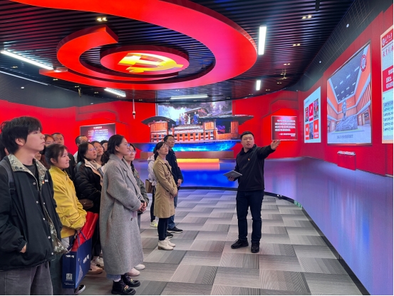 11月14日下午,管理学院党委副书记谭超带领党员教师、学院学生各党支部党员代表20余人赴湘潭大学马克思主义学院全国首批“大思政课”实践教学基地360度“四史”虚拟仿真实验室参观学习,沉浸式体验“潮”起来、“活”起来的党史课堂,全方位体味党史所蕴含的真理味道。
