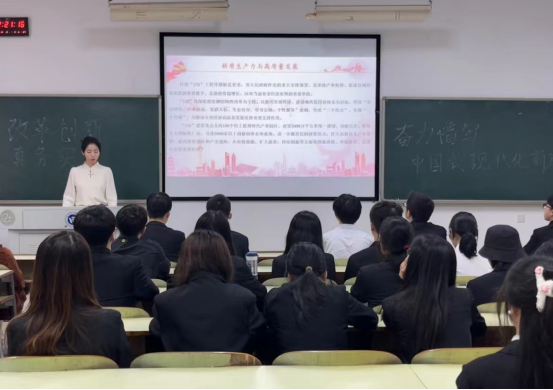 4月16日中午,学生党员在主校区C110进行党课学习并观看学习视频。彭小玲领学了《中国共产党纪律处分条例》和2024年《政府工作报告》,围绕习近平总书记考察湖南时的重要讲话及习近平总书记在湖南第一师范学院考察时的重要讲话,结合学校“135”工程实施方案就学生党员如何提升个人素养、助力建设“红色湖工”上主题为“新质生产力与高质量发展”微党课,鼓励全体党员深刻感悟湖湘红色文脉,提升文化素养的同时立志高远、报国图强,做中国故事的传播者和红色精神的传承者。