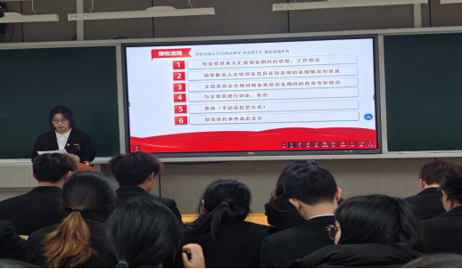 最后,支部书记李林向成功转正的预备党员表示祝贺,并殷切期望他们坚守初心,勇担使命,以对党忠诚、为民服务的担当精神,全身心投入党的事业,用智慧与汗水为党旗增辉,书写精彩华章。此次支部大会的圆满举行,彰显出管理学院学生第一支部委员会在队伍建设方面的新成效,为后续党建工作筑牢根基,注入强劲动力。