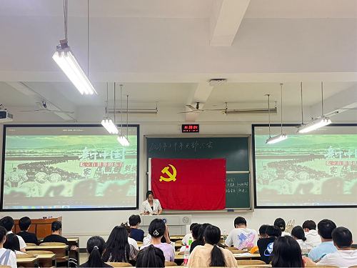 经济学院全体学生党员在支部书记李军花的组织下,于主教学楼D201观看“《选择》—换了人间”纪录片。