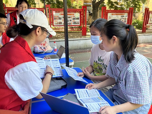 在霞光社区的志愿服务当中,党员志愿者们在社区搭建宣传服务点,传进行宣传活动,主要包括分发雷锋精神宣传传单,介绍雷锋事迹以及播放动画等多种形式向社区居民宣传雷锋精神,介绍家庭常见电器的正确使用方法和预防用电安全事故的基本知识,并强调了在选购和安装电器时需要注意的事项。活动吸引了许多社区居民,受到了社区居民的一致好评。