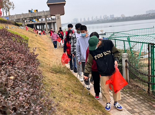 经济学院学生党支部在支部书记李军花的组织下,在宝塔社区湘江风光带开展“守护湘江,清滩净河”主题党日活动。