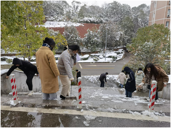 为持续推动党史学习教育走深走实,2021年12月27日下午2:30分,经济学院全体学生党员在经济学院大门口开展“扫雪除冰”主题党日活动。