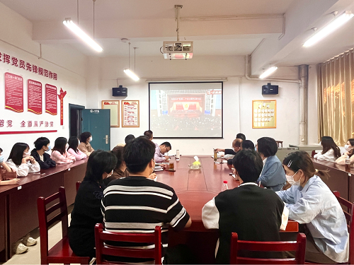 10月16日上午10点,经济学院学生党支部在G-115开展“庆祝二十大,开启新征程”主题党日活动,党支部书记李军花组织全体党员集体观看了党的二十大开幕盛况。