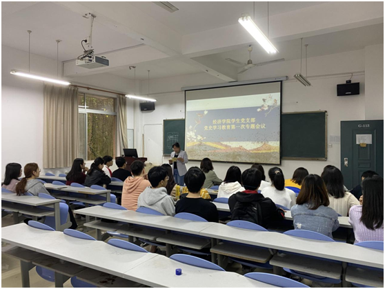 经济学院于2021年3月30日下午15:00在主教学楼G-113室举行了经济学院学生党支部党史学习教育第一次专题学习。会议由学生支部书记李军花同志主持,经济学院全体学生党员参加此次会议。