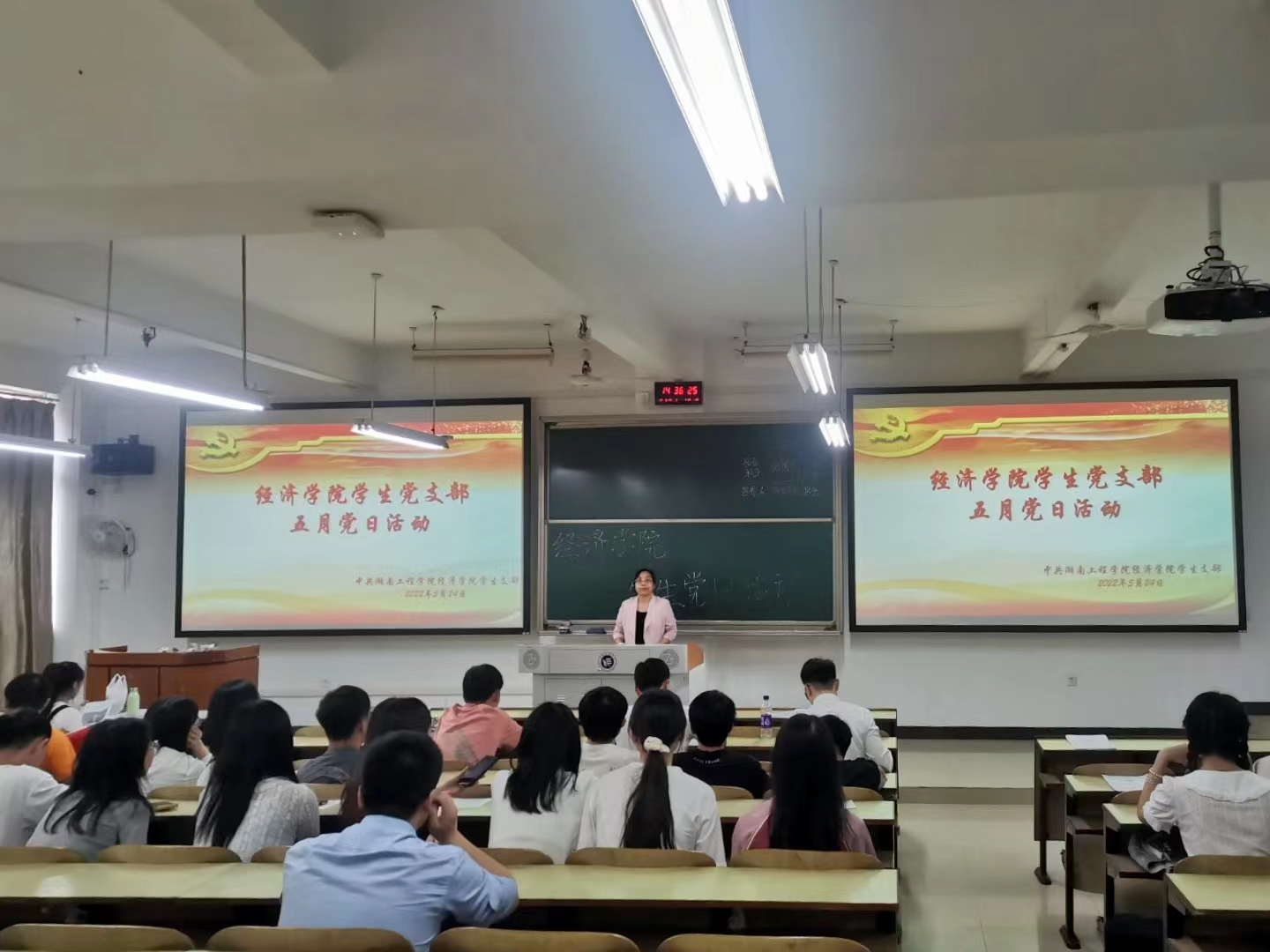 5月24日下午1:00,在经济学院学生党支部书记李军花的组织下,经济学院学生党支部在D-203开展了“习近平总书记在庆祝中国共产主义青年团成立100周年大会上的重要讲话精神”主题党日活动。
