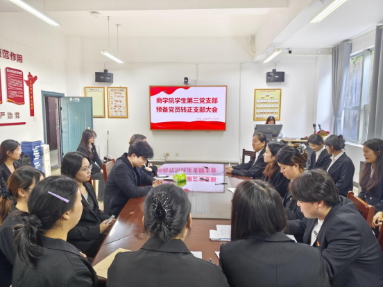 学生第三党支部在G-115庄重召开预备党员转正大会。会议由支部书记周艺主持,支部全体正式党员、预备党员参加。