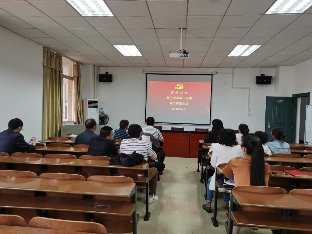 5月9日下午,管理学院教工党员第一支部在G505举行了关于刘有有同志的转正会议,会议由支部书记王超同志主持。