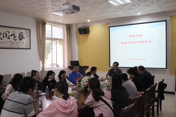 11月2日中午,管理学院学生座谈会分别在F104、G505、G509召开,会议主要就教学工作展开座谈。管理学院全体院领导,各专业教研室主任和教师代表,管理学院2016级、2017级和2018级班长和学习委员参加会议。