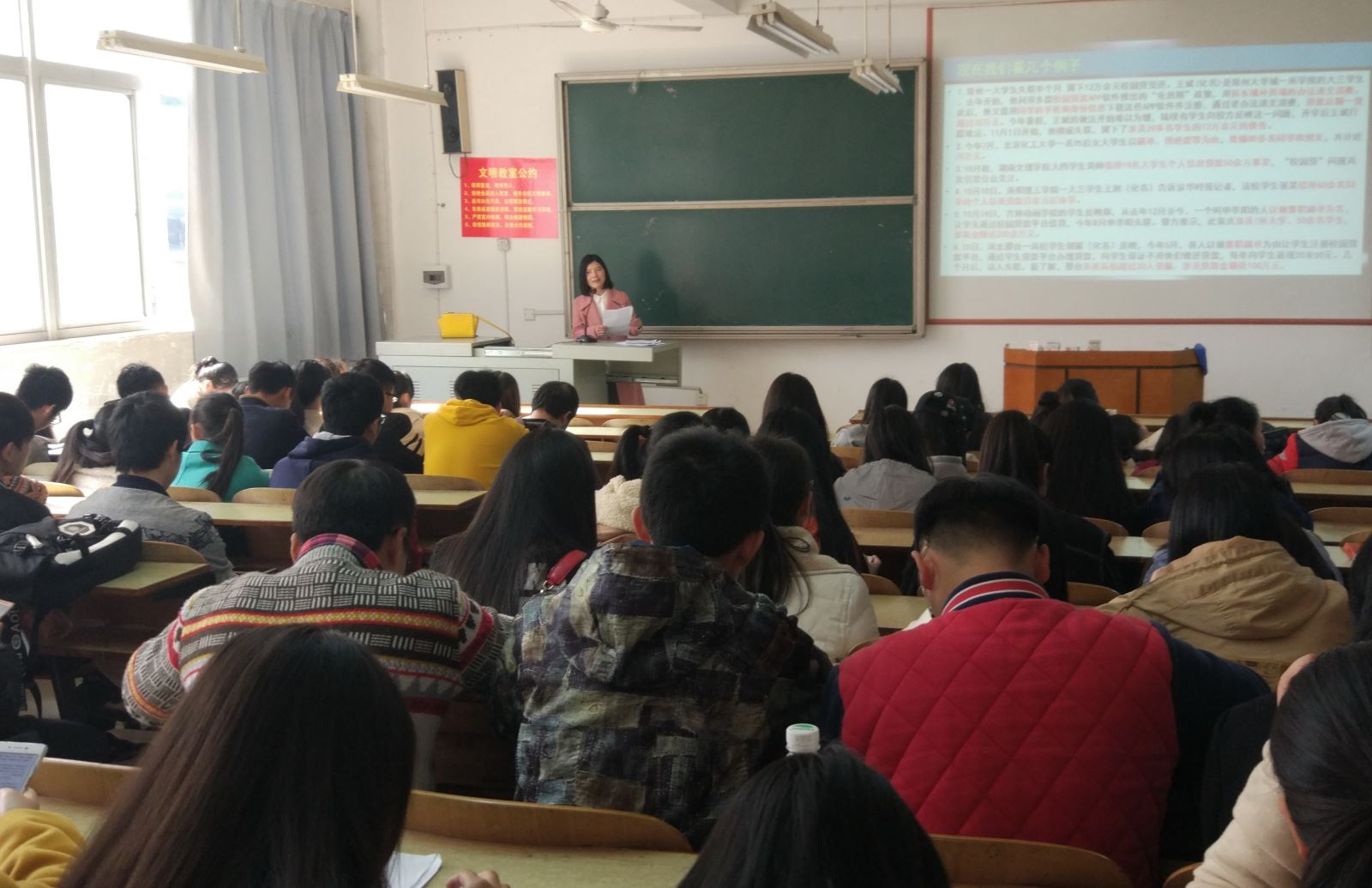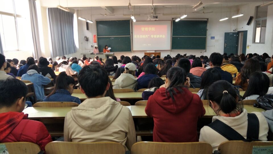 12月8号中午12点20分管理学院在主教学楼D栋教室召开12月份“安全活动月”专项月讲评。