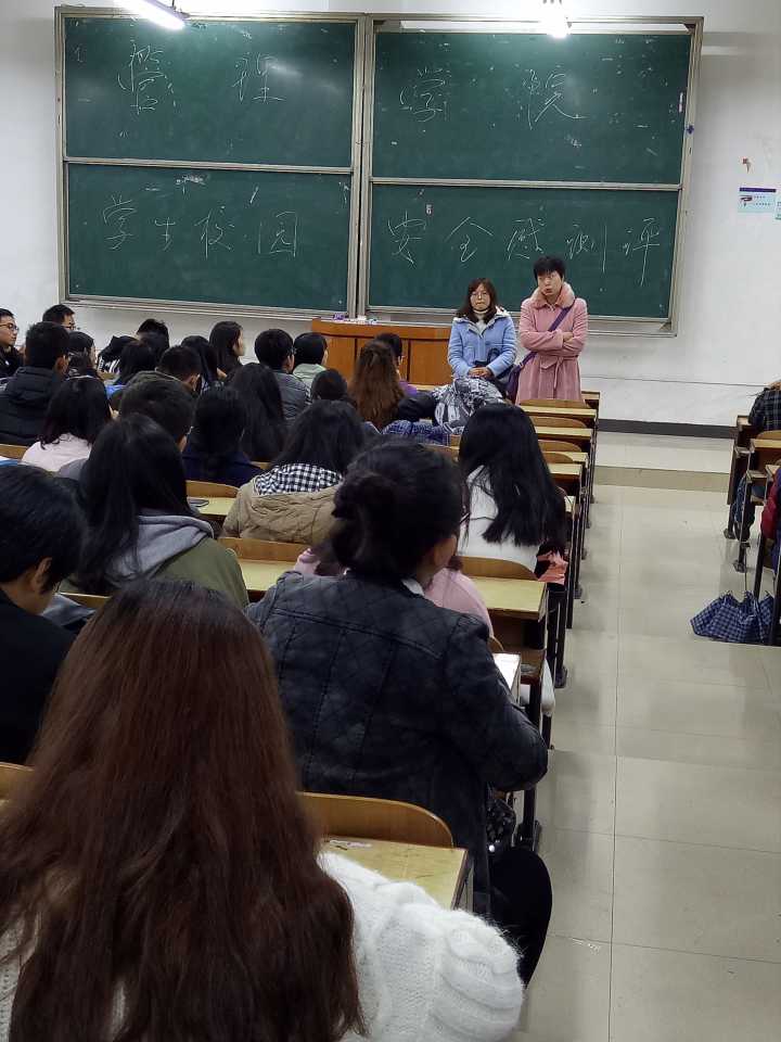 主要内容为一:“平安高校”建设及综合治理工作总结;向全院学生公布保卫处下发的综合治理资料;详细解读“平安高校”建设考评检查学生安全感测评表。二: 老师再次重申寝室安全的基本要求:生活部和女生部将进行常规卫生检查;辅导员老师将进行宿舍安全排查,防止寝室安全问题的发生,尽量消除安全隐患。冬季是火灾发生的高峰期,主讲老师提醒同学们要注意用电安全,不可使用违规电器。提高安全意识才能防范于未然。三:安全教育:提醒同学们防盗、防骗、防意外。保管好个人的随身物品,保持警惕。同时老师也提醒同学们,进入冬季,气温渐低同学们要注意保暖,以防生病。同时也要一如既往的严格要求自己,不可因为天气变冷而放松学业,养成旷课、迟到的不良习惯。 讲评会上,老师多次督促各位班长、团支书以及各位学生会的干部,一定要认真向班上同学们传达会议内容,加强班上同学在各个方面的安全意识。