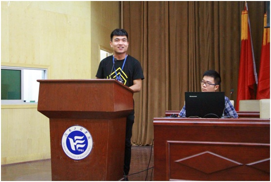 优秀在校生代表人力资源管理1402班陈亮发言,他对新生们的到来表示由衷的欢迎,期待新生能尽快适应新环境,学会学习,多参加社会实践。他寄语新生:“不忘初心,方得始终。”