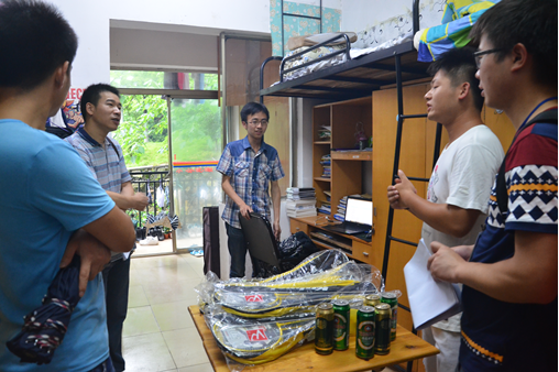 管理学院为了加强学生寝室内部管理、消除安全隐患,营造整洁文明寝室,将组织一系列安全排查活动。5月15日下午4点,由院党总支副书记钱祖煜带领辅导员老师和学生干部们拉开了排查序幕,深入到学生寝室,对学生宿舍的卫生、防火、用电、用水等情况进行逐间排查。