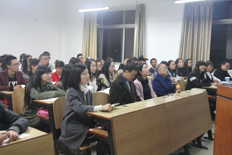 11月8日晚7点,管理学院旅游管理2015级“传统文化进班级”系列活动在教学楼B402正式开班,旅游管理教研室米振华老师开授第一讲《你为什么上大学》。讲座邀请到学生办公室主任罗荃老师、岳塘区法院法官刘志钢和湘潭市传统文化研究会会员张万福老人等热爱传统文化的长辈前来聆听。