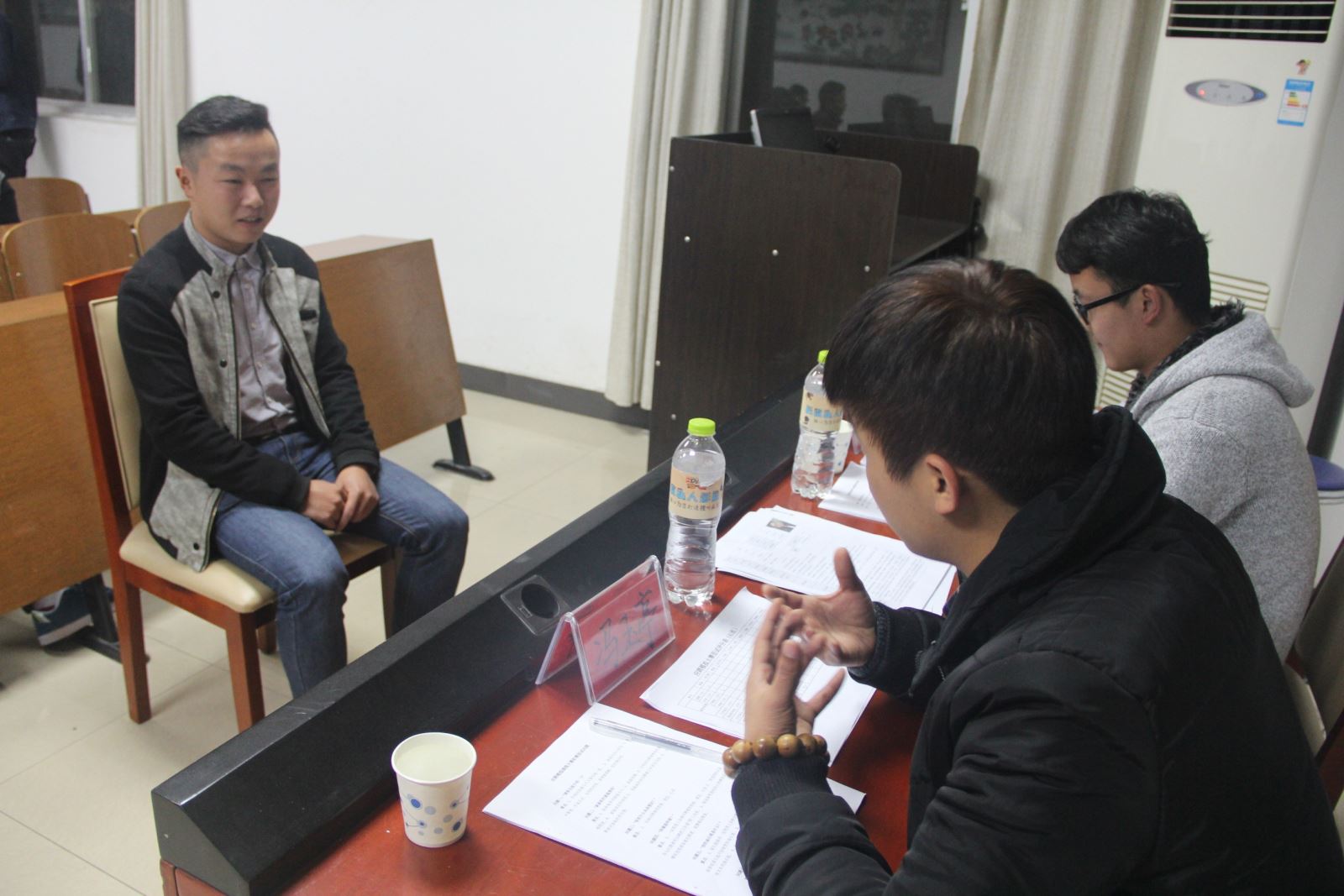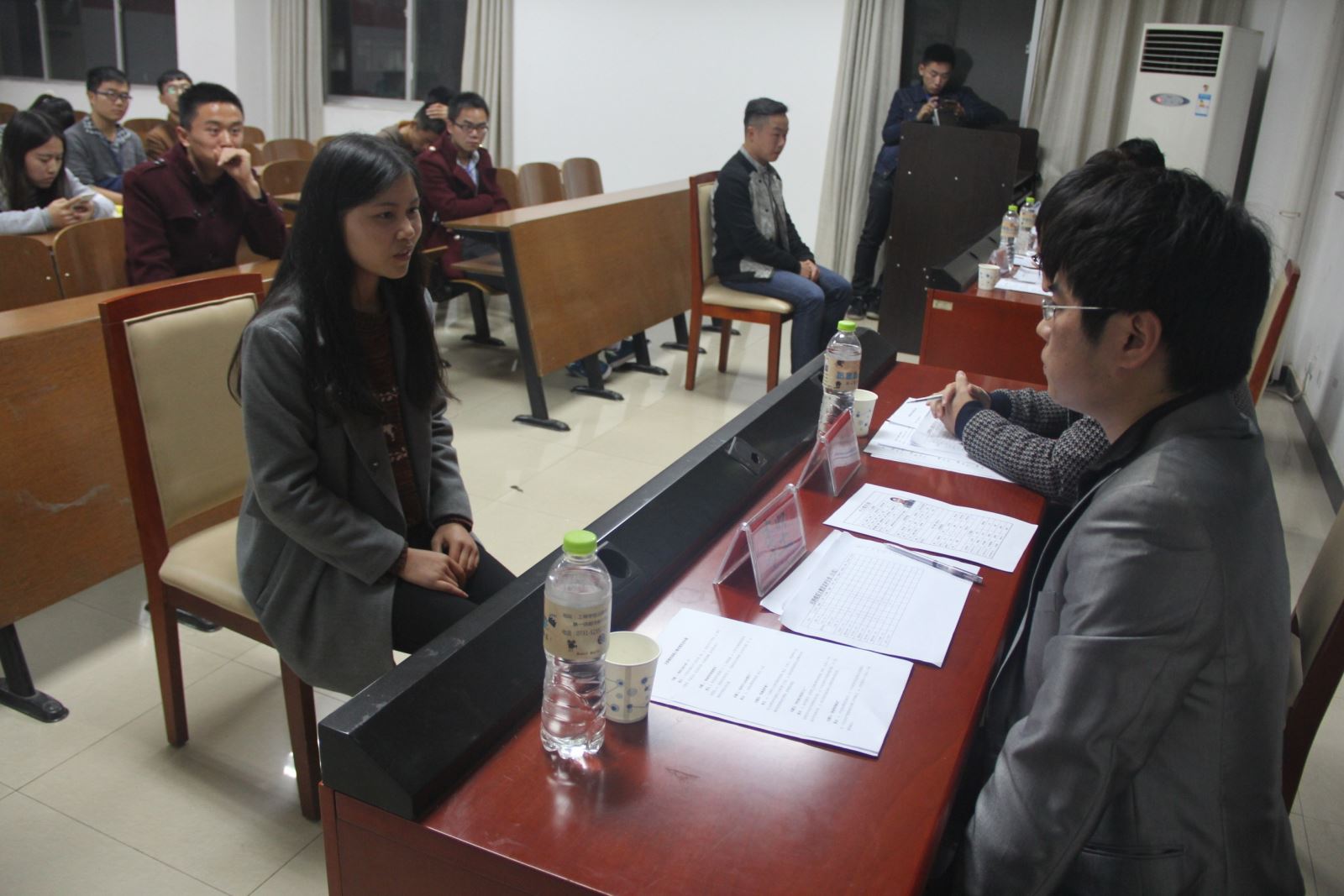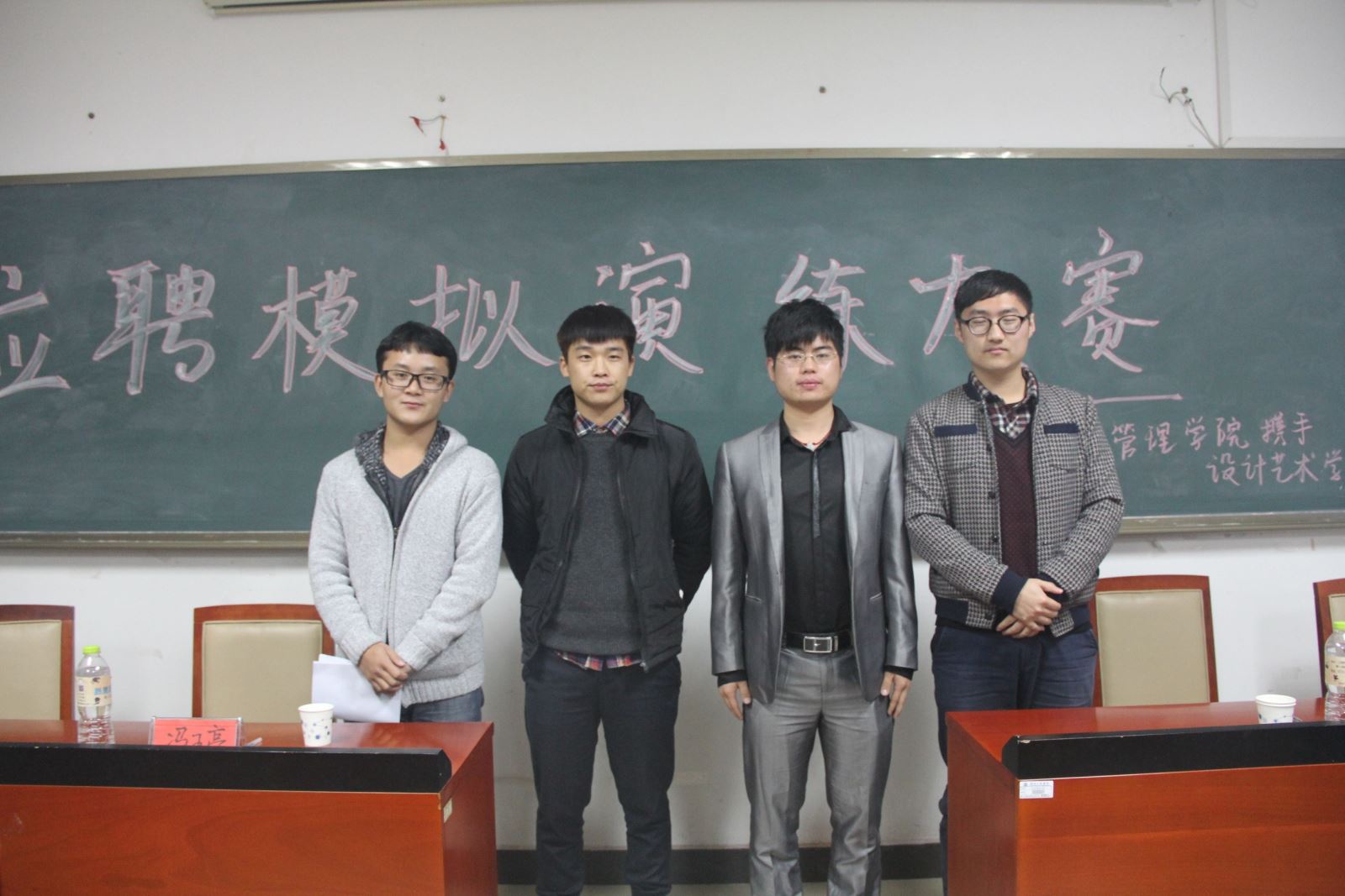 11月23号晚上7点,由管理学院和设计艺术学院联合举办的应聘模拟大赛初赛在G505开赛,企业代表李坚先生及往届应聘模拟大赛前三甲曹福宝、冯玉亭、马雨生担任此次比赛的评委。