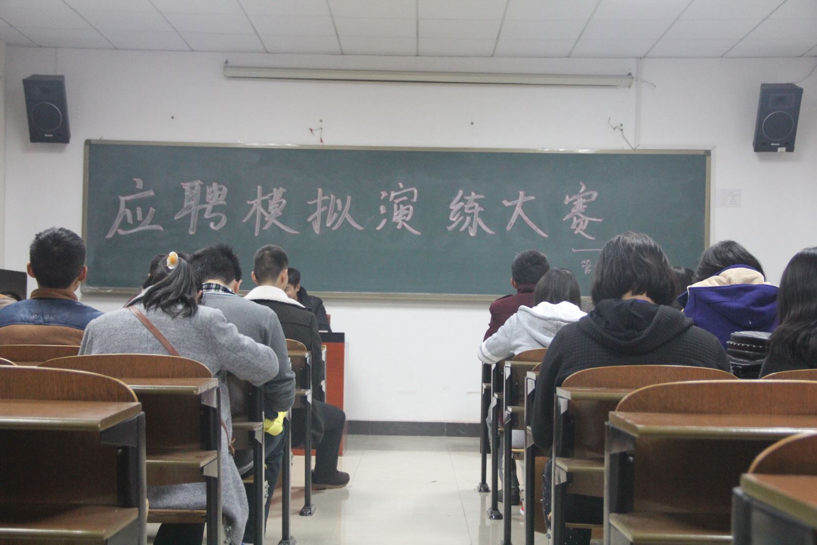 来自全校的参赛选手一百多名在教学楼D503等候面试。比赛现场实行模拟应聘的模式,评委分成两组对参赛者进行面试考察,评委围绕简历和选手的求职意愿展开实质性的提问与考察,选手们西装革履,沉着冷静,不乏精彩的言语和答辩。选手之间衔接有序,整个比赛进行流畅。通过模拟应聘,投递简历,面试等环节让选手们提前感受到找工作的紧张气氛与艰难,来提升如何自己的应变能力。