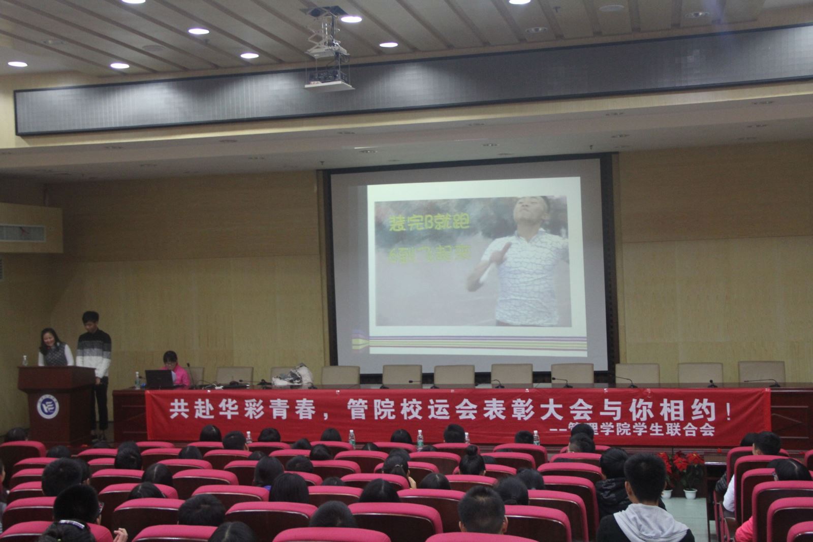 校运会表彰大会到此结束了,表彰会不是结束而是另一个新的开始,管理学院的学生们,加油!