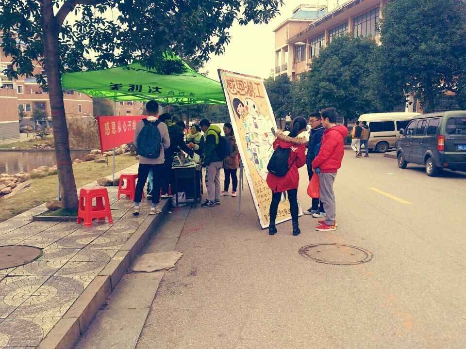 管理学院团总支学生联合会主办,团总支学生联合会科技部、青年志愿者中心承办的管理学院“学会感恩,从我做起”系列活动在明德一、二食堂门口拉开帷幕。青志部部长李娜娜,科技部部长刘子溱、青志及科技部全体干事近40名成员参与了此次活动。