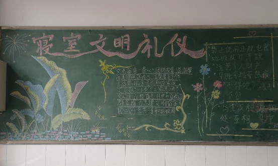 为了更好学习寝室文明礼仪,丰富学生文明内涵,创造文明环境。管理学院于11月27日下午1点在明德1宿舍一楼举行寝室文明礼仪黑板画活动。