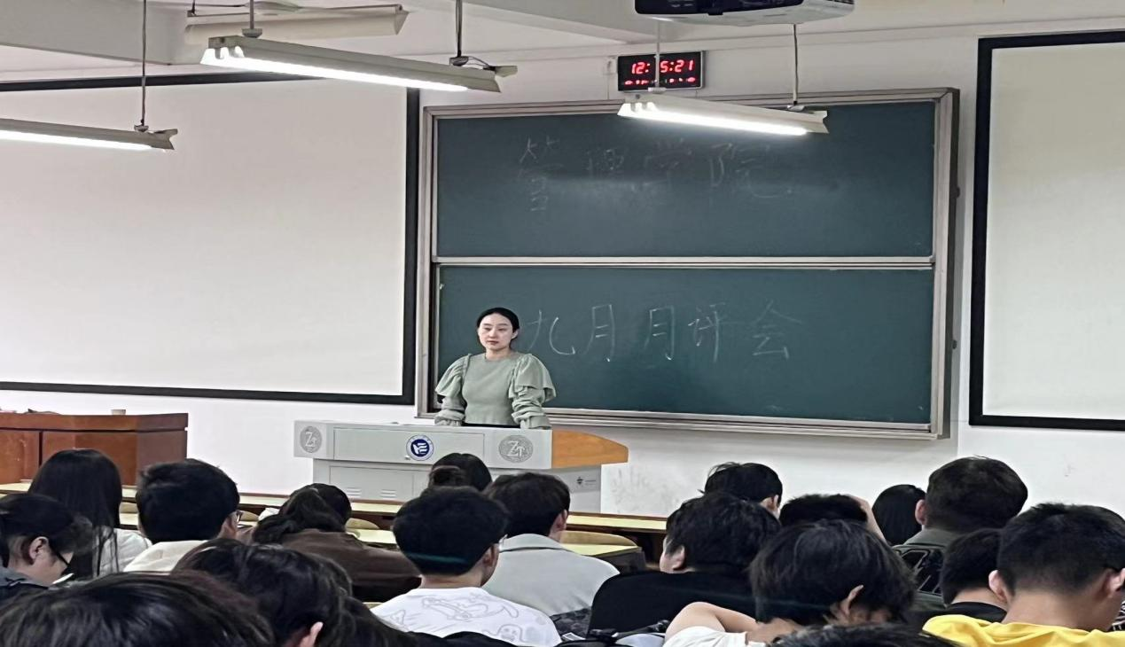 管理学院大二主校区全体同学,大三会计学各班级学号单数与其他各专业全体同学以及大四五名班委参与了会议讲评,本次月讲评会议由八名学办老师对工商管理等八个专业进行线下月讲评。会议分为常规工作通报、学生活动、共青团工作、党务工作和安全教育五个部分。