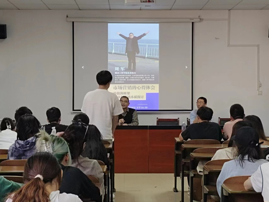 的同学们分享个人创业经历与行业发展前景,点亮学生们的未来发展之路。22级市场营销全体同学参与了本次活动。
