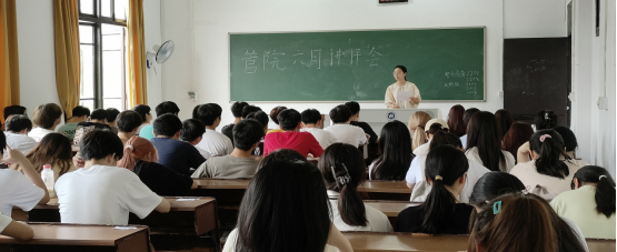 其次,老师对本月学生活动进行了全面梳理和总结。成功完成了一系列重要任务,包括创新创业部在5月进行了全国第二届高校数智化商业决策创新大赛区域赛,跟进国赛信息;5月下旬进行2023年“学创杯”湖南省大学生创业综合模拟大赛省赛;6月初协助营销协会开展“正大杯”实战营销赛道比赛。心理部在5月23日举行了校心理健康PPT宣讲比赛;5月24日进行了校团体辅导活动;5月25日下午进行了校游园会活动;5月28日举行校朋辈表彰大会;5月下旬进行了“摆脱抱怨,赋能成长”紫色手环心理特色活动;6月9日下午在主校区心理团体辅导室开展“爱在旅途”心理沙龙活动。学风建设小组在6月9日进行了四六级经验分享会。安全督察部在6月10号进行了安全生产月活动;6月20日下午14:30到15:30开展防非反诈骗宣传讲座活动。办公室鼓励参加2023年管理学院三下乡活动的同学好好表现,获取奖项。资助中心在5月开展“励志青春.榜样有我”学生优秀事迹宣讲会;5月26日举办了“诚信、感恩、励志”主题漫画竞赛活动;6月8日进行了学生资助诚信主题教育知识竞赛初赛;6月16日举办梦航助学金发放仪式。青年志愿者中心在6月开展了青志系列志愿活动,为同学们的发展提供了丰富多彩的平台和机会。将继续发扬良好的工作作风,以实际行动落实学院的各项工作任务。除此之外还谈到精创杯将于本周进行院校报名,;正在举办学霸笔记评选活动,欢迎同学们积极踊跃报名参加。