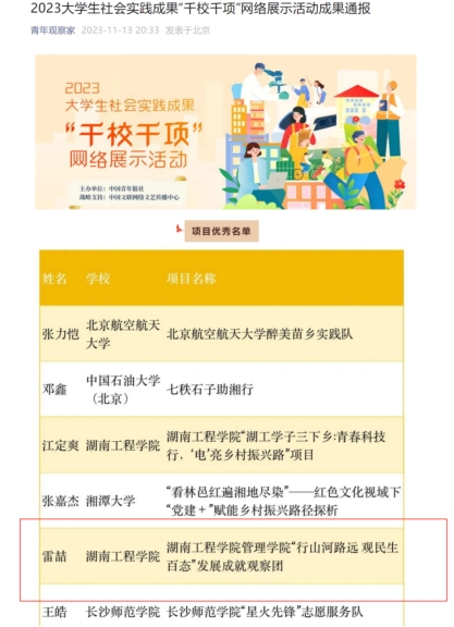 近日,中国青年报社主办2023大学生社会实践成果“千校千项”网络展示活动公布获奖名单,麻豆成人网