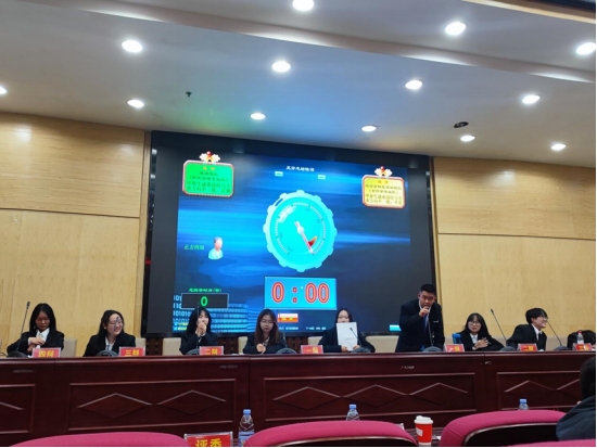 比赛共分为开篇陈词、攻辩阶段、攻辩小结、双方质询、自由辩论和总结陈词六个环节。赛场气氛自本场主席喊下开始的那刻变得紧张又激烈。在论证环节,双方辩手针对“毕业生就业岗位与专业方向”之间的关系进行举例论证,他们针锋相对,你来我往,却又不失风度,侃侃而谈。尤其是在最精彩的自由辩论环节,双方辩手各自针对对手逻辑上的漏洞据理力争、逐一回击,现场气氛迅速升温,精彩不停。在双方四辩进行总结陈词后,本场辩论赛落下了帷幕。