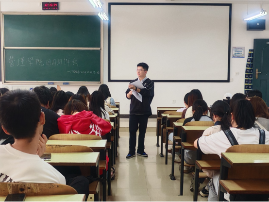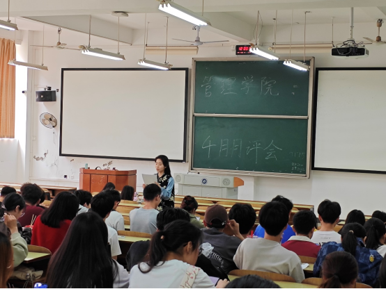 管理学院大一会计学、电商、大数据学号为双数的同学以及其他专业全体同学,大二、大三各专业班级学号为双数的同学,大四各班五名班委参与了会议讲评。本次会议由全体学办老师进行线下月讲评。会议内容分为重点工作回顾、常规工作强调两个部分。