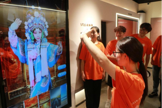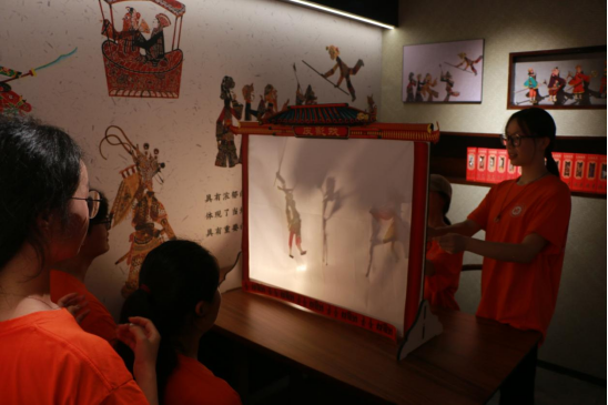 张谷英村非遗展示体验中心展示了包括花鼓戏、皮影戏、岳州扇等在内的多种岳阳地区特色非遗,实践团成员通过文字、图片、展物等全面了解多彩非遗的同时,还通过AR虚拟互动、实操体验等方式沉浸式感受了非遗文化魅力。依托场内数智化技术,实践团成员实现了“身着”戏曲服饰、“登台”表演戏剧的“梦想”,通过个人实操进行皮影戏表演,感受了纱幕皮影的魅力。