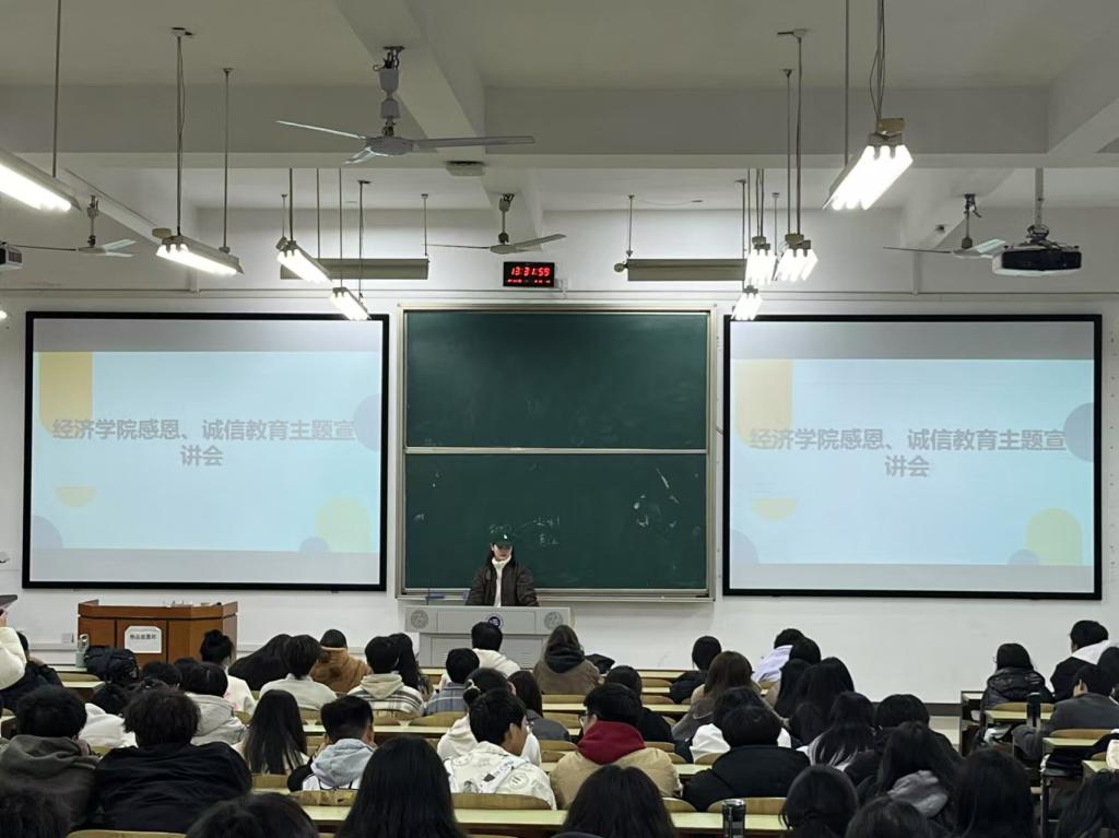 为了培养学生的感恩之心和诚信品质,深化学生对感恩与诚信的认识,形成良好的道德风尚,经济学院于2024年11月23日中午12:30在主教学楼D403召开了一系列以“感恩·诚信”为主题的教育活动。本次会议由经济学院刘佳馨老师主讲。