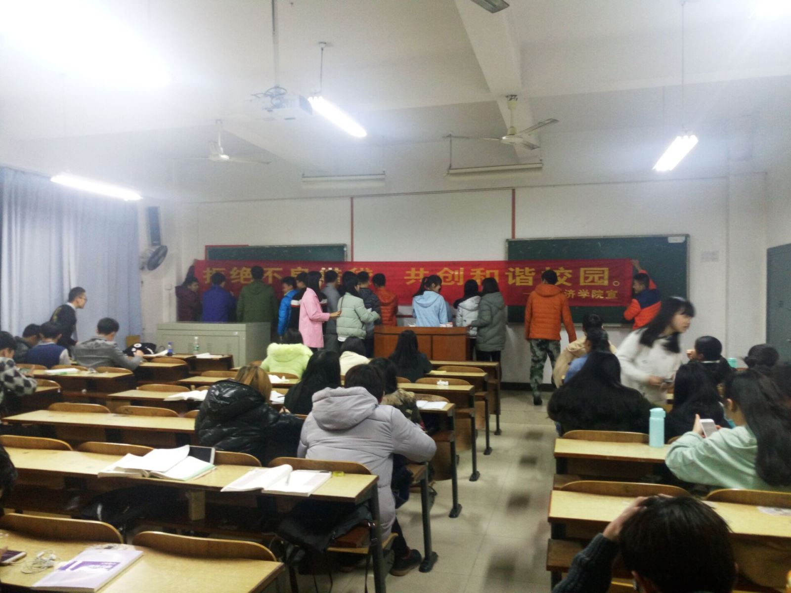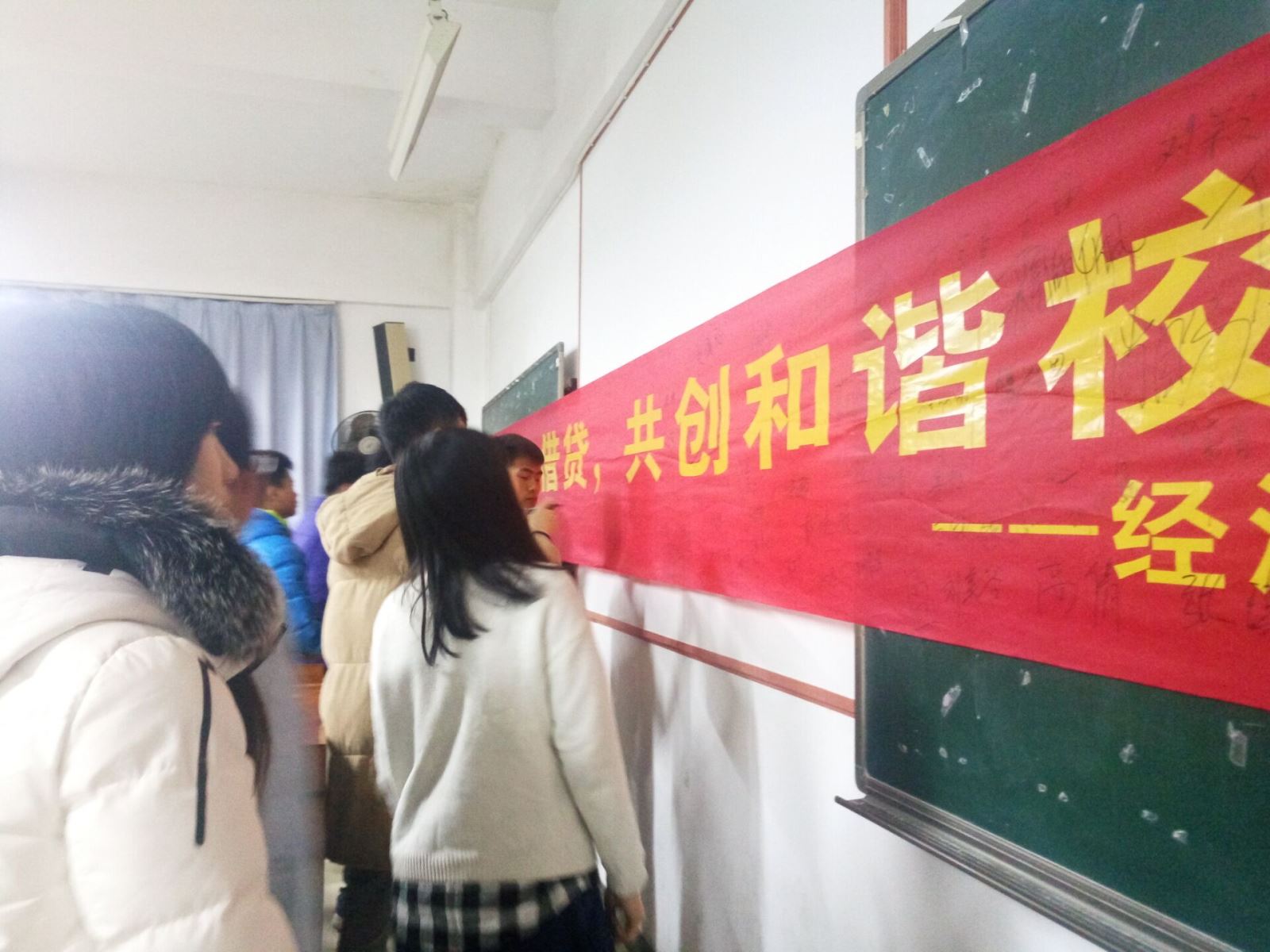 在班会上,各班班长结合案例向同学们进行讲解,分析“校园贷”存在和蔓延的特点及风险,提醒大家要养成正确的消费观念。伴随着互联网金融快速发展而滋生的校园借贷,利用青年学生消费潜力大的特点,迎合学生不成熟的消费心理与理财能力,在校园的渗透力逐步增大。同学们要明确意识到校园贷款的本质以及危害,坚决抵制不良校贷,保护自己的权益。班会后,学生干部组织全院同学在"拒绝不良借贷 共创和谐校园"主题横幅上签名,以示拒绝不良借贷地决心。