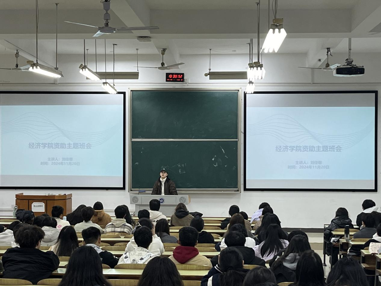 为了进一步推进资助政策的落实,引导家庭经济困难学生树立远大梦想,让学生积极投身于社会实践当中,营造“锲而不舍,敢为人先”的校园氛围,经济学院于2024年11月20日在主教学楼D101开展“资助育人”主题班会,会议由团总支书记刘佳馨主持。