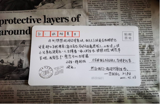 同学们在明信片上写下对母亲的祝福