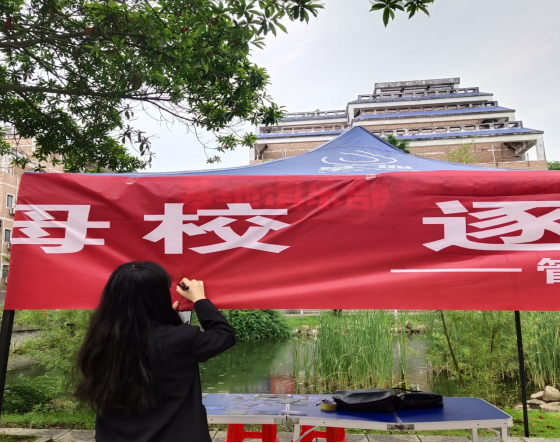 5月20日,管理学院在新校区设置帐篷摆点,挂上条幅,举办红心向党,感恩资助,感恩母校毕业季感恩活动,让毕业生写下对母校的寄语。