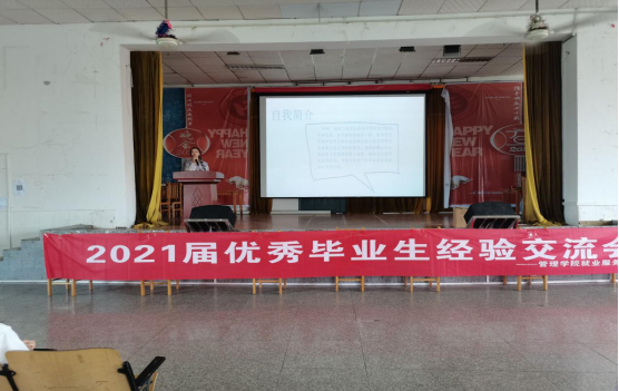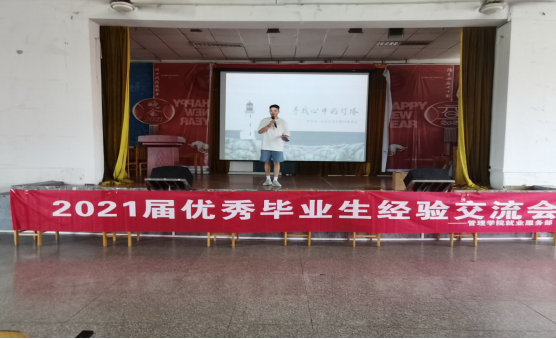 管理学院就业服务部主办的以“分享经验,继往开来;领略风采,造就辉煌”为主题的2021届优秀毕业生经验分享会在南校区第一教学楼四楼活动中心正式举行。此次分享会是管理学院法制与诚信教育月系列活动之一。