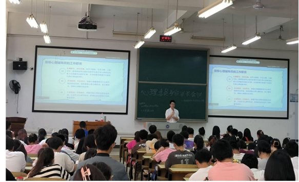 管理学院于4月20日在主校区D101和南校区一教303开展心理委员与寝室联络员培训会议。在罗蒙老师的带领下,本次培训会议有序开展。