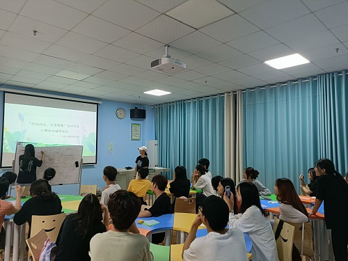 活动开始前,心理部部长龙侣带领同学们开展了“画画接龙”破冰小游戏,每六位同学为一组,以小组为单位进行画画接力,同学们通过热身游戏拉近了彼此间的距离,增强了交流合作意识。紧接着,在“心灵手巧”游戏环节,同学们充分发挥自己的想象力和动手能力,将手中的折纸变成栩栩如生的小青蛙、小恐龙。在一片欢声笑语中,活动来到了“树洞悄悄话”环节,大家匿名在卡片上写下近期烦恼并放进烦恼箱中,随后每位同学依次从烦恼箱中抽取一张烦恼卡片,根据卡片上的困惑给出相应的意见,同学们都希望能通过真诚的建议帮助他人化解烦恼。随着时间的推移,活动进入到了情绪调节技巧培训阶段,龙侣通过引入趣味案例向同学们讲解了生活中常见的情绪问题及调节情绪的方法,同学们积极互动。活动最后,龙侣就本次心理团体辅导活动进行总结,她希望每位同学在大学期间都能找到自己所热爱的事物,勇敢追寻自己的梦想,快乐地享受青春。参加活动的同学表示,此次团辅气氛活跃轻松,在活动参与中释放了压力,也对如何调节自己的不良情绪有了一定程度的了解。