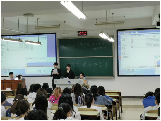 为了迎接“5·25全国大学生心理健康日”,提高同学们的心理健康知识水平,丰富同学们的校园文化生活,经济学院于2022年5月23日19:30在主教学楼D302开展了以“用心聆听、用智引领、共筑未来”为主题的心理健康知识竞赛。本次活动由学院心理部组织,同学们积极参与。