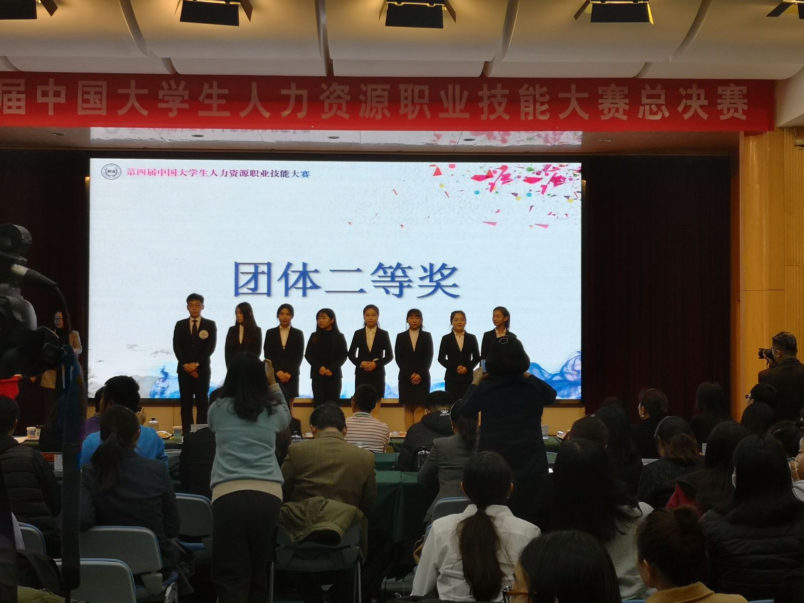 11月24日,第四届中国大学生人力资源职业技能大赛暨海峡两岸及港澳台地区人力资源职业技能大赛全国总决赛在中国劳动关系学院成功举办,本届大赛为期两天,由管理学院曹哲文老师带队指导的,人力资源15级张子鸣、文博涵,全湘君,向红四名同学组成的学校代表队参与此次赛事。经过为期两天的专业比拼,我校表现突出,荣获团体二等奖,其中曹哲文老师获优秀指导老师奖,张子鸣、文博涵、全湘君获单项二等奖,向红获单项三等奖。