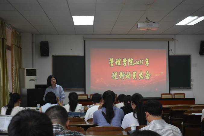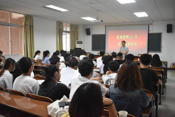 管理学院在G505成功召开"2017年迎新动员大会",会议钱祖煜副书记主持,辅导员老师、2017级新生班主任,学生会全体成员、下班党员以及朋辈心理辅导员参加此次会议。