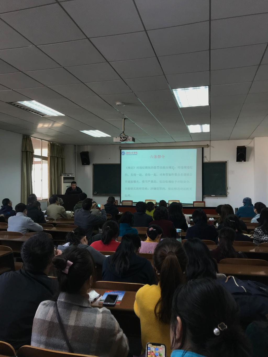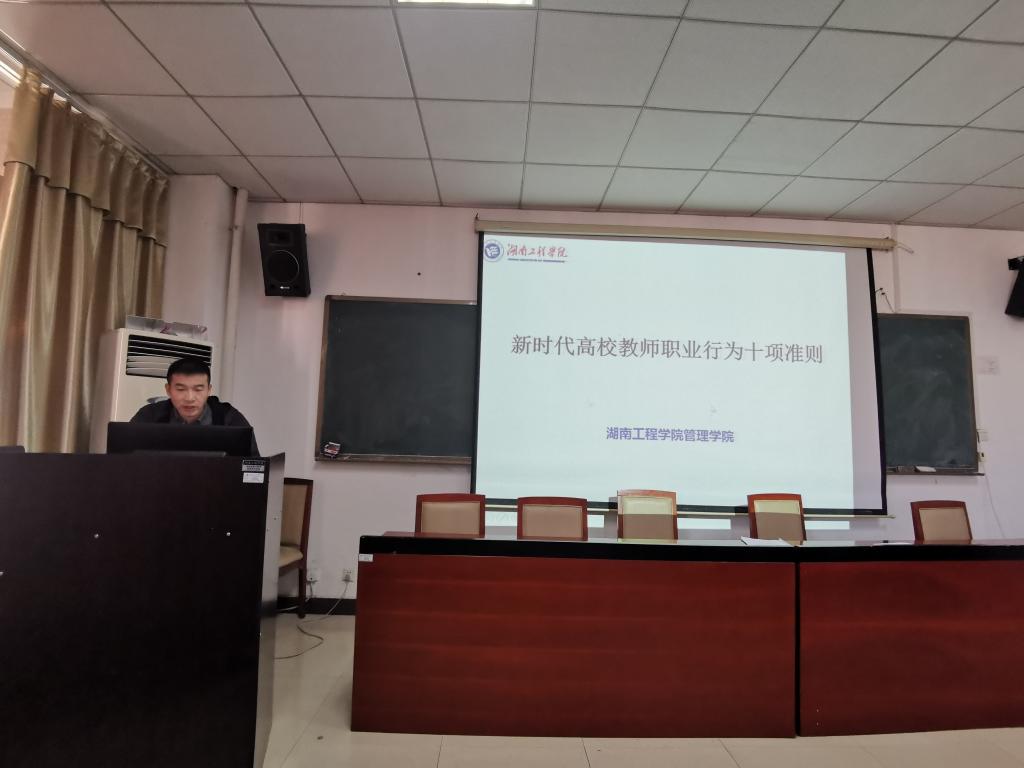 全体教师在G-505会议室开展教育部《高校教师职业行为十项准则“六条禁令”和高校教师师德禁行行为“红七条”的学习,由管理学院书记钱祖煜主持。